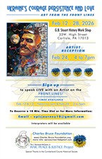 The J. Sherwood McGinnis, Jr. War, Peace & Justice Project, in partnership with the Charles Bruce Foundation, invites you to Ukraine’s Courage, Persistence, and Love: Art from the Front Lines — a moving exhibit featuring artwork created during the war in Ukraine. These works reflect resilience, hope, and the lived experience of artists responding to conflict through creativity.