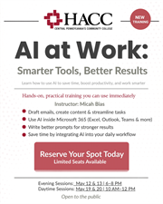 HACC is excited to introduce a new hands-on training designed to help professionals and businesses work smarter with AI.